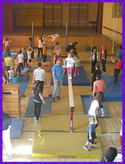 Durch das Geräteturnen werden vor allem koordinative und konditionelle Fähigkeiten entwickelt, aber auch Mut und Selbstbeherrschung. Viele unserer Kinder zeigten hier, was in ihnen steckt. Auch einige Mütter, erlebten noch einmal, was man bis heute nicht verlernt hat und der ein oder andere "Felgaufschwung" wurde stolz vorgeführt.