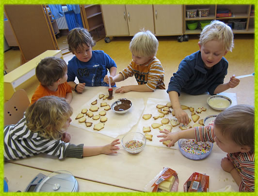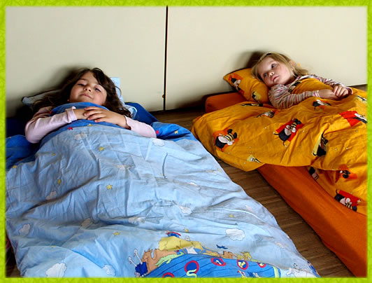 Nach dem Essen gehen die „Schlafkinder“ zum Schlafen. Eine Gruppe bietet Ausruhen an, die beiden anderen Gruppen beginnen erneut die Freispielphase mit den jeweiligen Möglichkeiten (Garten, Tischspiele, Flur), bis zur Abholung.
